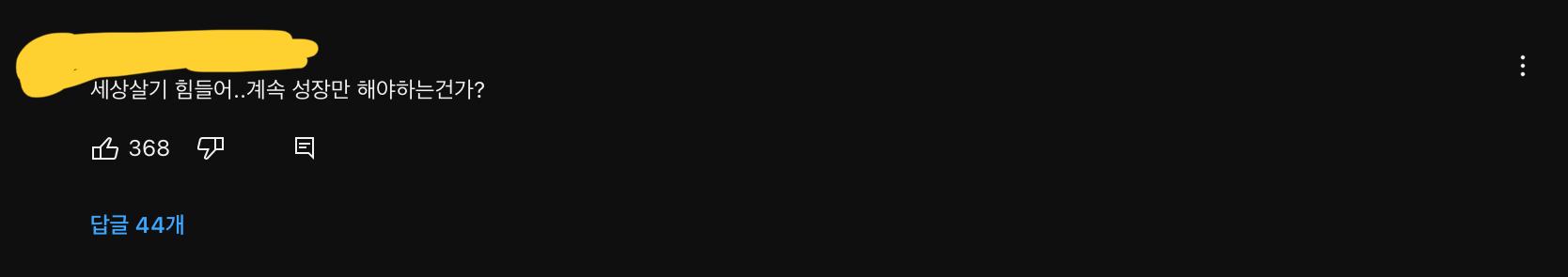 가끔은 귓등으로 들리지 않았던 말들도 많았다. 그 놈의 성장, 자존감, 성공,... 어휴.. 그러다 봤던 댓글 중에 마음을 때렸던 글이 있었다.