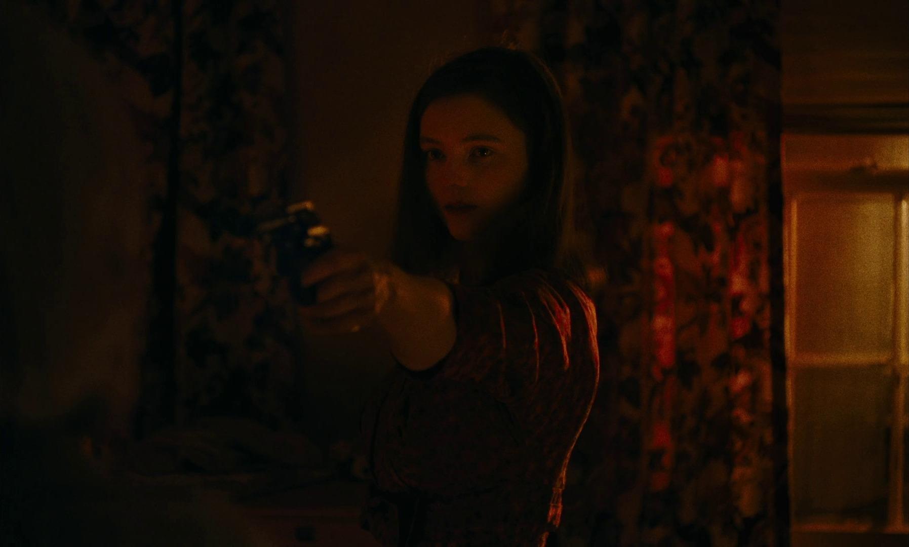 아버지의 총을 들고 지하실로 내려가 리 포크의 어머니에게 총구를 겨눈 뒤, 진실을 말하라고 아일린이 협박한다.