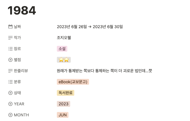 <1984>는 내가 노션에 짧게 남겼는데도 기억이 가물가물했다.