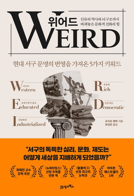 이 책에서 나는 친족 관계, 상업 시장, 자발적 결사체와 관련된 제도들이 어떻게 WEIRD의 심리를 형성하고 경제적 번영을 가져오는 데 기여한 중요한 심리적 변화를 유도했는지를 보여주고자 한다. 이 모든 일이 어떻게, 왜 일어났는지를 설명하는 열쇠는 우리의 심리가 어떻게 제도를 형성하고 제도가 어떻게 우리의 심리를 형성했는지를 설명하는 데 있다.