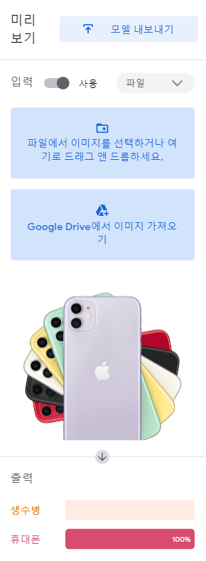 - 어떤 큰 이미지를 넣어도 224 x 224로 줄여서 딥러닝 적용. 보통 120 x 120, 180 x 180인데 그만큼 Teachable Machine 성능이 아주 좋다는 의미